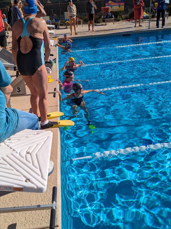 What a fantastic day at our own DesertView Pool! We had great weather, twenty-eight enthusiastic swimmers and a bunch of cheerful and hard-working volunteers - all coming together to celebrate swimming in honor of the memory of Glen Peterson.